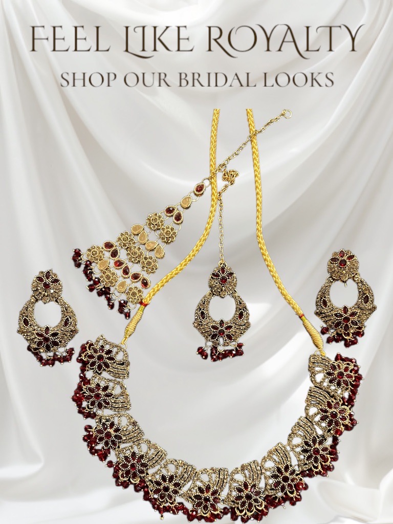 5-piece Maroon and Gold Beaded Bridal Jewellery Set