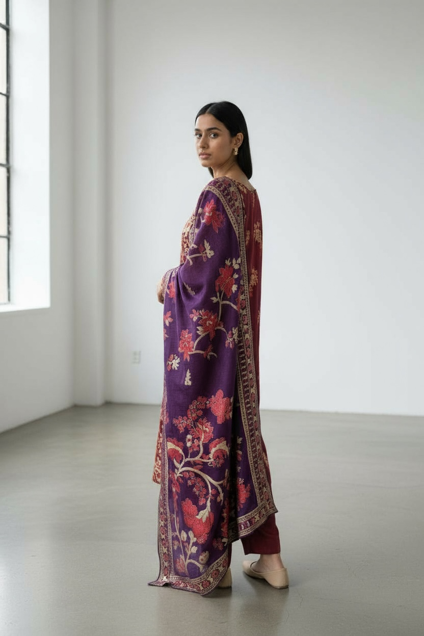 Maroon and Purple Floral resham Woven Straight-Cut Suit