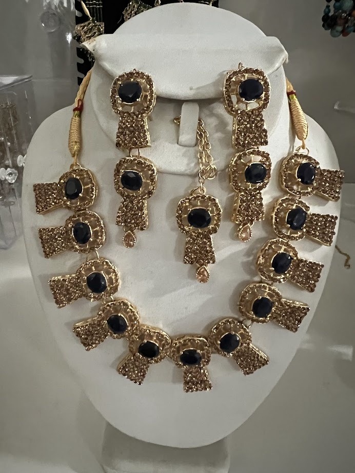 Distinct Design: Features a bold, geometric link design across the necklace and earrings, offering a contemporary twist on classic South Asian jewelry motifs.