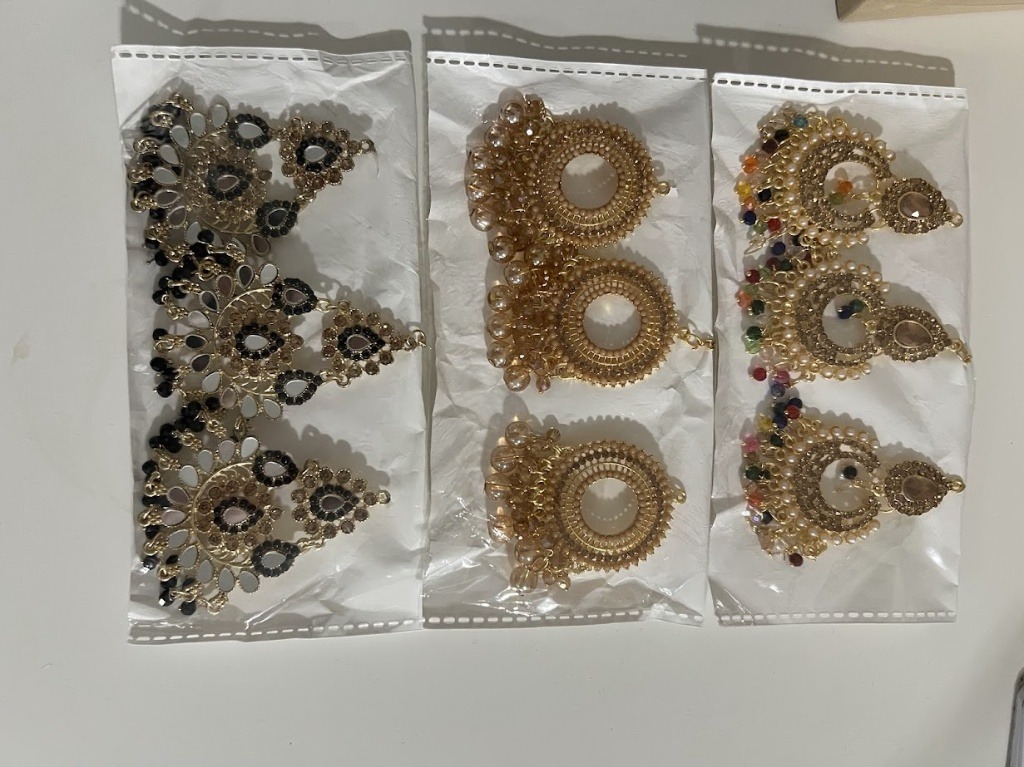 Complete Ensemble: This expansive collection provides everything needed for a full bridal look: a statement Choker Necklace, an elegant multi-strand Rani Haar (long necklace), a pair of elaborate Jhumka Earrings, a striking Maang Tikka, a beautiful Jhoomar/Side Tikka, and a matching Finger Ring.